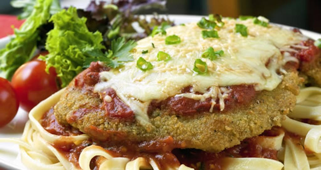 Italian style chicken cutlets in a marinara sauce, topped with mozzarella cheese
